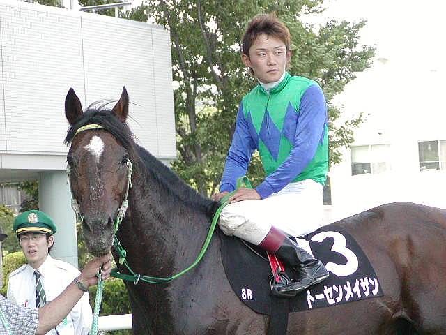 トーセンメイザン 父・スターオブコジーン×母・スイートスター 馬主: 島川隆哉氏 調教師: 佐々木亜良 騎手:大庭和弥 生産者:静内・八田ファーム 成績:18戦2勝(OP初勝利、福島JSは去年2着) |